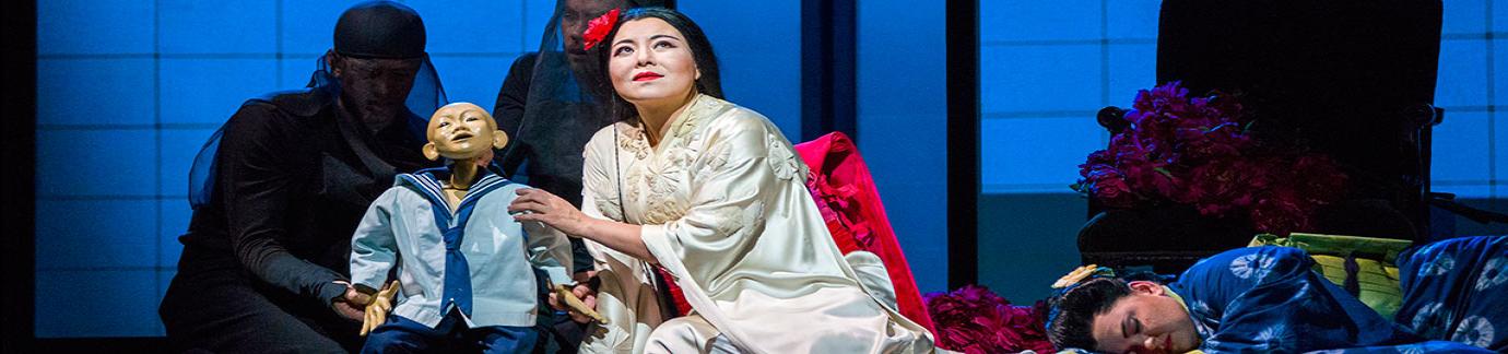 Έχουν περάσει τρία χρόνια και η Τσο-Τσο-Σαν περιμένει τον άντρα της, να γυρίσει στο σπίτι τους. Η Σουζούκι ζητάει την βοήθεια των θεών, μα η Μπάτερφλαϊ την ψέγει για την πίστη της στους ράθυμους ιάπωνες θεούς κι όχι στην υπόσχεση του Πίνκερτον ότι θα επιστρέψει κάποια μέρα. Εμφανίζεται ο Σάρπλες μ' ένα γράμμα απ' τον Πίνκερτον, μα προτού το διαβάσει, ο Γκόρο καταφθάνει με το πιο πρόσφατο προξενιό, απ' τον εύπορο πρίγκηπα Γιαμαντόρι. Η Μπάτερφλαϊ σερβίρει ευγενικά τσάι, μα επιμένει ότι δεν είναι διαθέσιμη για γάμο - ο αμερικάνος της άνδρας δεν την έχει εγκαταλείψει. Αρνείται τις προτάσεις του Γκόρο και του Γιαμαντόρι. Ο Σάρπλες προσπαθεί να διαβάσει το γράμμα του Πίνκερτον και παράλληλά της προτείνει να ξανασκεφτεί την πρόταση του Γιαμαντόρι. Αντί για απάντηση, του παρουσιάζει τον γιο που απέκτησε απ' τον Πίνκερτον. Του λέει ότι τον φωνάζει "Καϋμό", μα όταν γυρίσει ο πατέρας του, θα τον φωνάζει πλέον "Χαρά". Ο Σάρπλες νιώθει αναστάτωση και δεν μπορεί να συνεχίσει άλλο το γράμμα. Φεύγει και υπόσχεται να ειδοποιήσει τον Πίνκερτον για το παιδί. Μια κανονιά αναγγέλλει την άφιξη κάποιου πλοίου στο λιμάνι. Η Μπάτερφλαϊ και η Σουζούκι τρέχουν στον εξώστη, στο τηλεσκόπιο για να διαβάσουν τ΄ όνομά του - είναι το πλοίο του Πίνκερτον. Γεμάτη χαρά, η Μπάτερφλαϊ βοηθάει τη Σουζούκι να διακοσμήσουν το σπίτι με λουλούδια του κήπου. Πέφτει το σκοτάδι και η Μπάτερφλαϊ, η Σουζούκι και το παιδί, μένουν άγρυπνοι να παρατηρούν το λιμάνι.