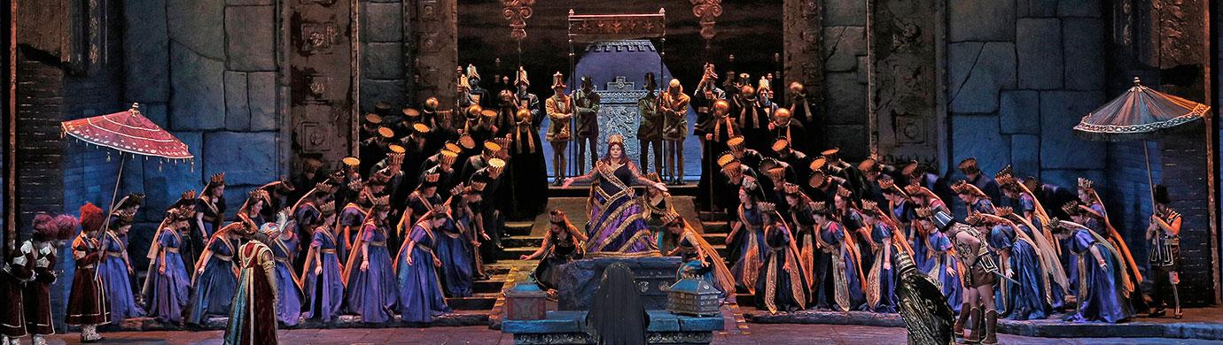 Σε μια αίθουσα του παλατιού, ο Ασούρ θυμίζει στη Σεμίραμι ότι αυτός κανόνισε τον θάνατο του Νίνο ώστε ν’ ανεβεί αυτή στον θρόνο τάζοντάς του σε αντάλλαγμα το χέρι της. Η βασίλισσα απορρίπτει τον ισχυρισμό του και λέει ότιαν ζούσε ο γιος της, θα τη βοηθούσε. Ο Ασούρ είναι αποφασισμένος να πάρει εκδίκηση.